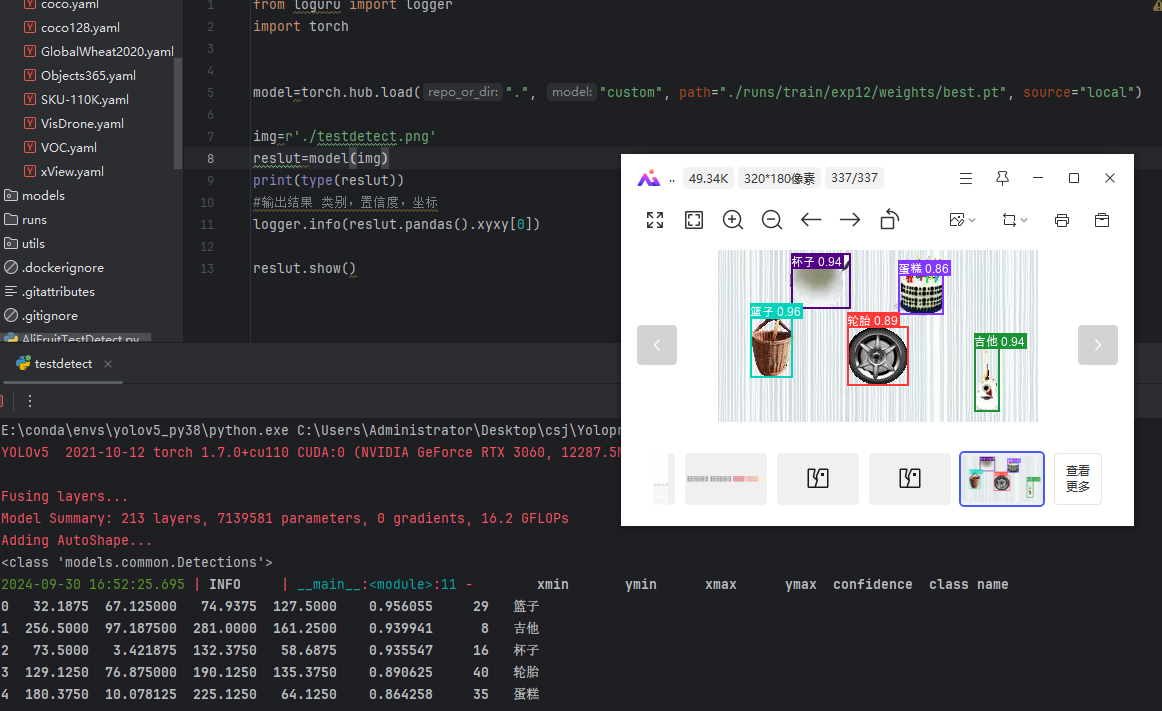 class YOLOV5_ONNX(object): def __init__(self,onnx_path): '''初始化onnx''' self.onnx_session=onnxruntime.InferenceSession(onnx_path) self.classes=['乌龟','企鹅','伞','免子','冰激凌','凤梨','包','南瓜','吉他','大象','太阳花','宇航员','帐蓬','帽子','房子','挂锁','杯子','松鼠','枕头','树','树袋熊','椅子','气球','汉堡包','熊猫','玫瑰花','瓢虫','瓶子','皇冠','篮子','耳机','花盆','苹果','草莓','蘑菇','蛋糕','蝴蝶','裙子','足球','车','轮胎','铲土机','闹钟','鞋','马','鱼','鸟','鸭子'] def letterbox(self,img, new_shape=(640, 640), color=(114, 114, 114), auto=False, scaleFill=False, scaleup=True,stride=32): '''图片归一化''' shape = img.shape[:2] if isinstance(new_shape, int): new_shape = (new_shape, new_shape)